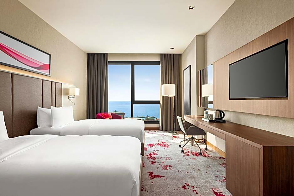 Featuring free toiletries, this double room includes a private bathroom with a shower, a hairdryer and slippers. The air-conditioned double room features a TV with satellite channels, soundproof walls, a mini-bar, a tea and coffee maker as well as sea views. The unit has 2 beds.